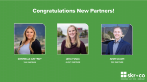 Colorado Springs, CO. – Stockman Kast Ryan + Co, LLP (SKR+CO), the largest locally-owned certified public accounting firm in Southern Colorado, announces recent staff promotions.